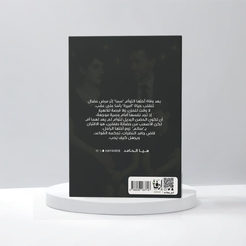 لا وقت للحزن، ولا فرصة للانهيار إذ تجد نفسها أمام وصية موجعة: أن تكون الحضن البديل للتوأم لم يعد لهما أم. لمن الأصعب من حضانة طفلين، هو الاقتران بـ " سالم " زوج اختها الراحل، قاضٍ جامد النظرات، تحكمه القواعد، ويجهل كيف يُحب.